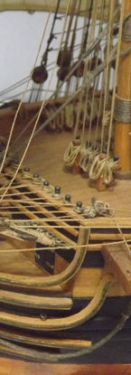 とは言え模型造りには不明な点もあり、先ずは、帆が帆桁(ヤード)に直にロープで結わい付けられていたものか、ジャッキスティを使ったものなのかで、これはwebの写真で後者であることが分かった。
